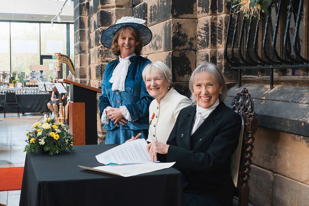 The signing took place in the presence of the newly appointed High Sheriff, Lynn Pegler DL, and was witnessed by Patricia Peters JP, Chairman of the Cheshire Bench.